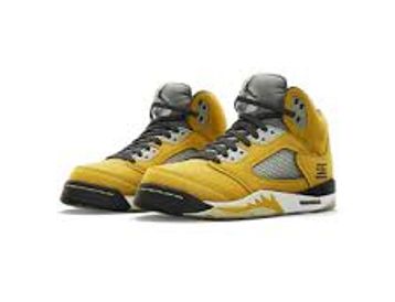 Inspired by the Japanese capital’s vibrant lifestyle, this AJ5 features a bright yellow suede upper with a translucent plastic netting on the mesh sidewalls for breathability. An embroidered “23” appears on the lateral rear in kanji form to honour the country’s cultures, a familiar detail if you had the “What The” iteration. The signature Jumpman logo adorns the rear and silver reflective tongue, while a “23” graphic animates the sockliner as a nod to the GOAT’s legendary jersey number. The innovative lace toggle and padded collars deliver a secure, supportive fit to bring out your A game on and off the court. Black speckles decorate the yellow shark teeth on the midsole to elevate the silhouette’s design further. A visible Air unit rests on the heel for adequate cushioning, shored up by icy herringbone traction patterns on the outsole.